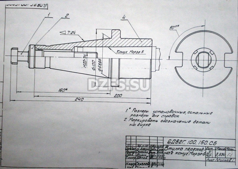 Втулка переходная на конус Морзе №1 мод. 6Д82Г.100.190 / конус 7:24 №50 /
